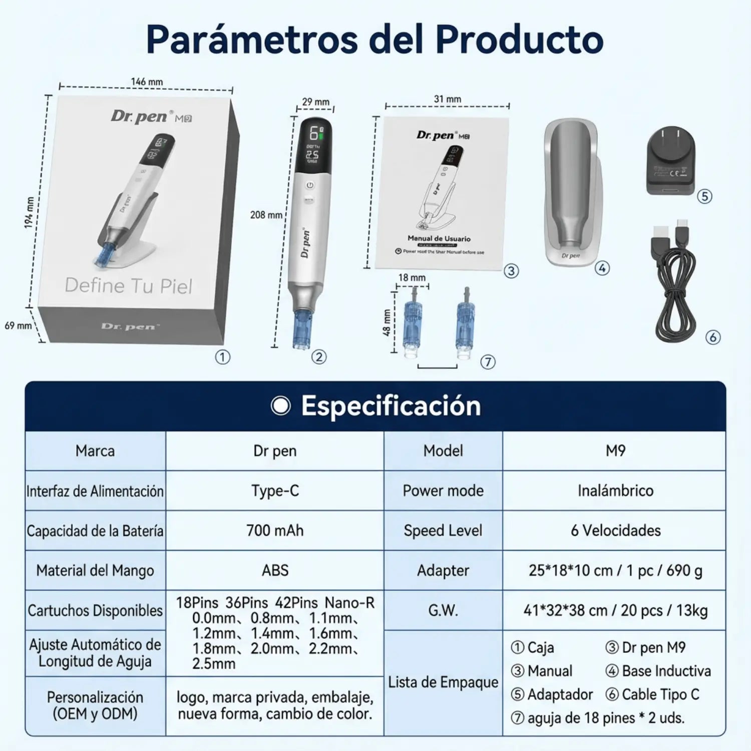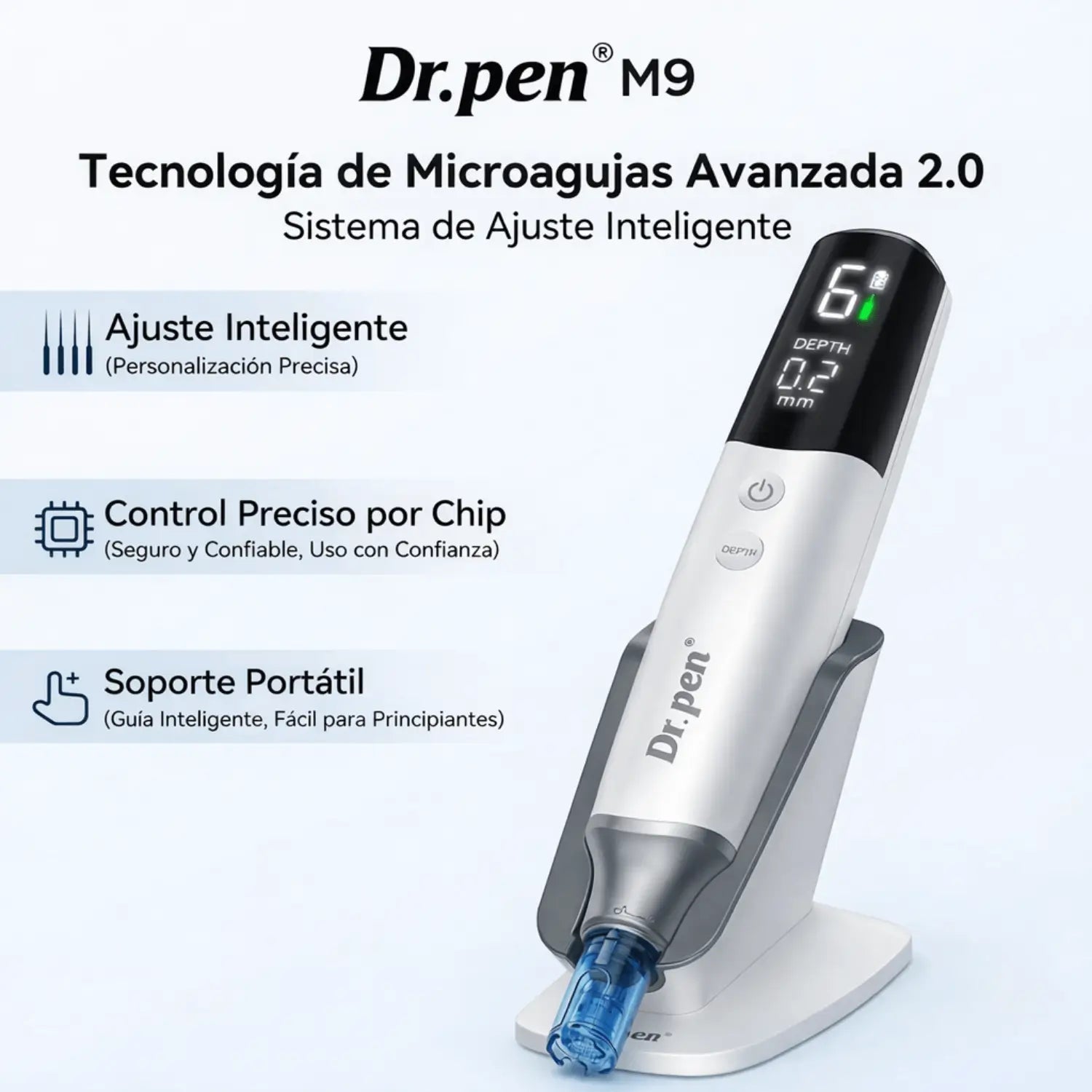 El Dr. Pen M9 es un dispositivo avanzado de microneedling diseñado para ofrecer mayor precisión, seguridad y facilidad de uso. Gracias a su sistema inteligente, elimina los ajustes manuales y permite tratamientos más uniformes y controlados.